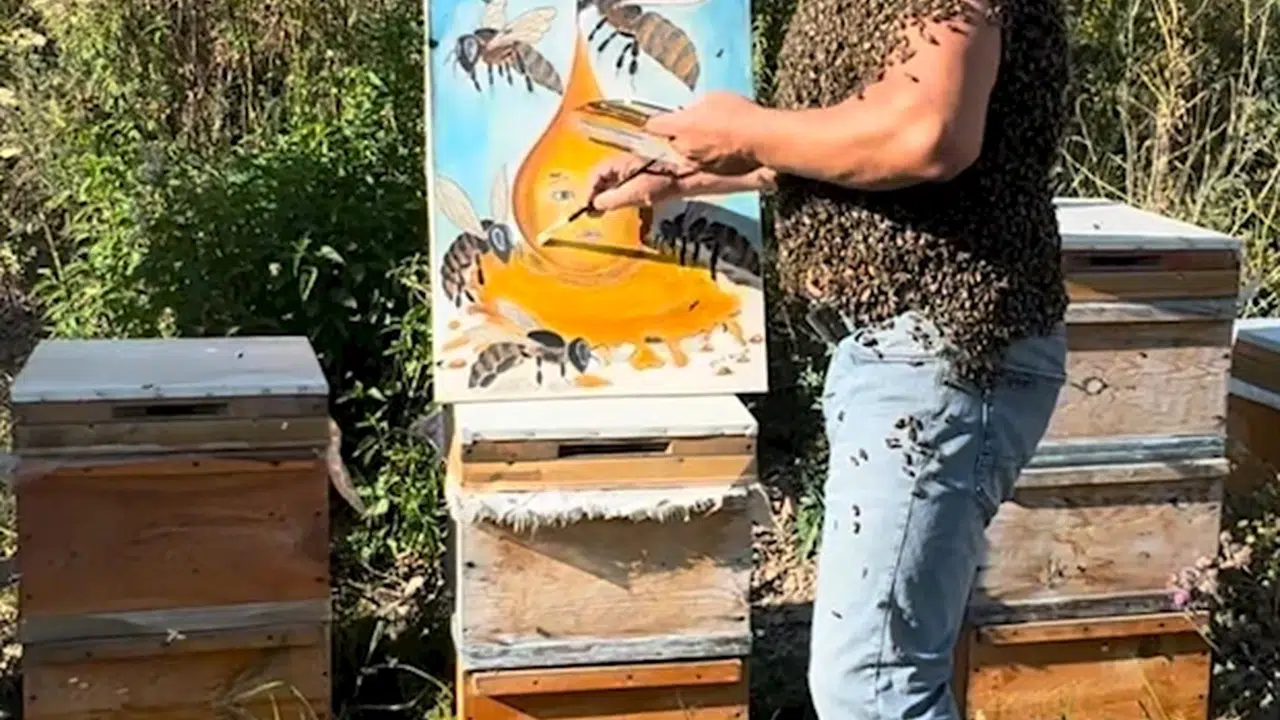 Vücudunda binlerce arıyla resim yaptı, savaşların durmasını istedi