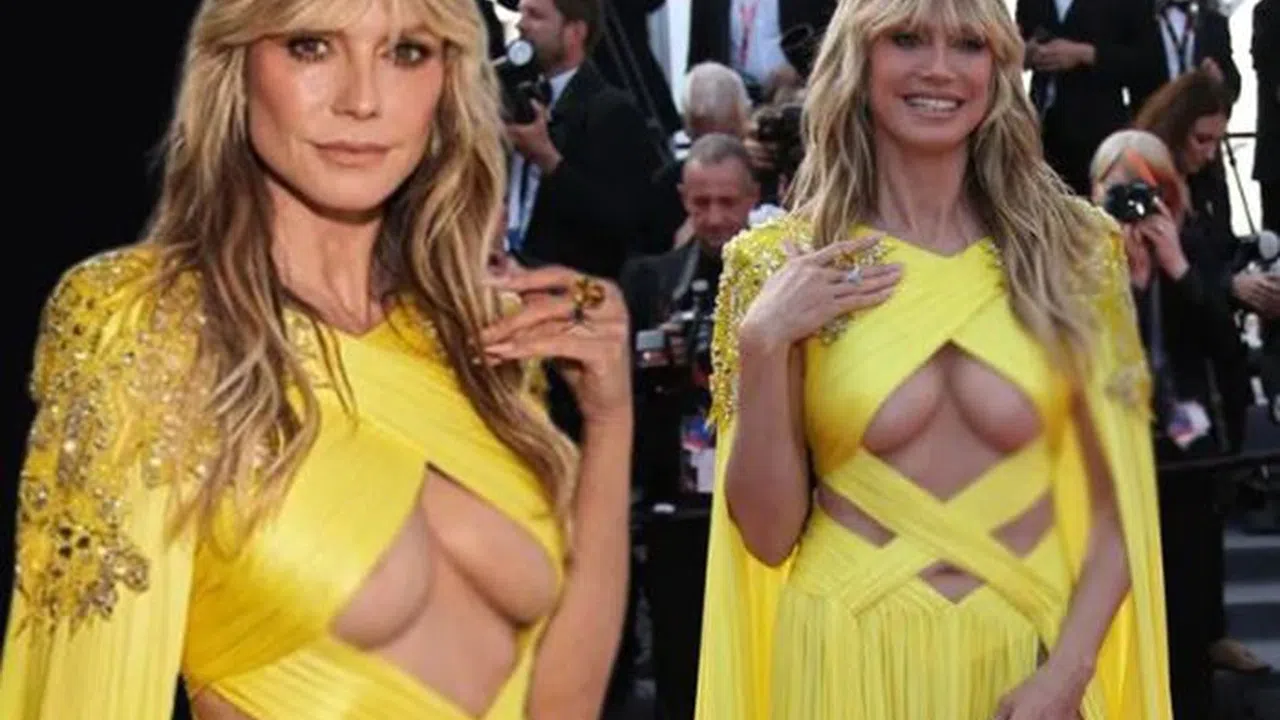 Her zaman iddialı olmayı başaran model Heidi Klum yıllara meydan okuyan güzelliğini Cannes Film Festivali'nde de sergiledi. Model Klum sarı göğüs dekolteli elbisesiyle poz verirken frikik de verdi.