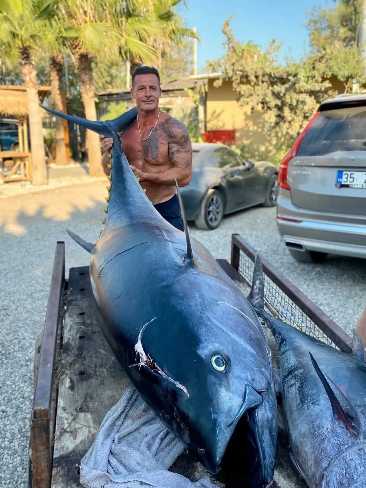 Altınkaya tuttuğu dev orkinosla çekilen fotoğrafını sosyal medya hesabından "Büyük balık küçük balığı yer" notuyla paylaştı