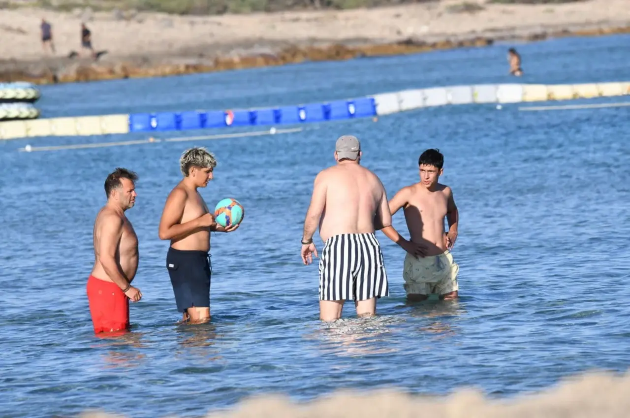 Habertürk'ün haberine göre, Nihan Akkuş ve oğlu Ali Yiğit ile birlikte tatil yapan Buruk, sık sık denize girerek serinlerken oğluyla da voleybol oynadı.
