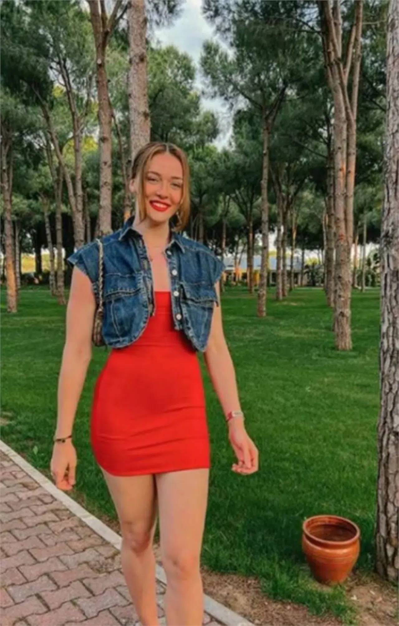 Voleybolcu Zehra Güneş bu sefer de ağaçların arasında kırmızı süper minisiyle pozlar verdi.