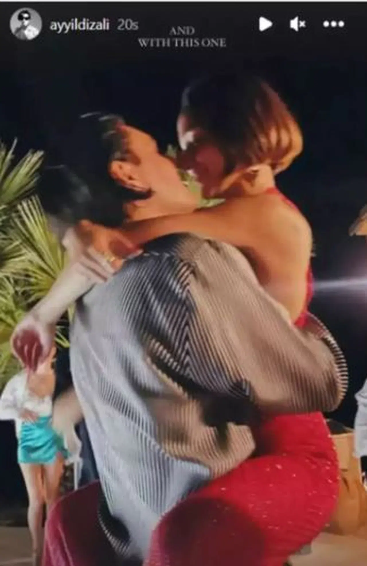 Sandalyeden kalkan şarkıcı, Ali Can Ayyıldız'ın boynuna sarılıp defalarca öptü.