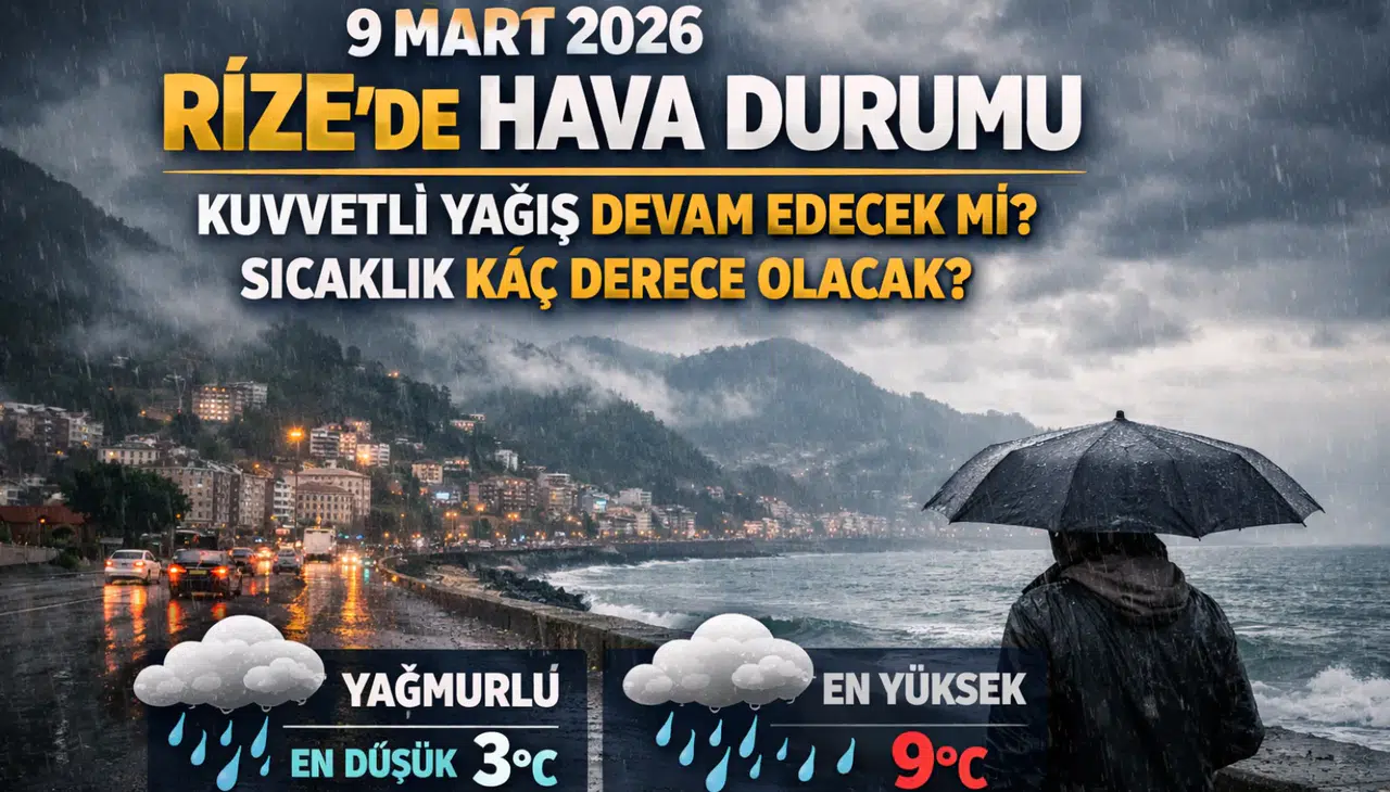 Rize’de yeni haftanın ilk gününde hava durumu vatandaşların gündeminde yer almaya devam ediyor. Özellikle günlük planlarını yapacak olan vatandaşlar ve sürücüler, 9 Mart 2026 Pazartesi günü için meteorolojik tahminleri yakından takip ediyor.