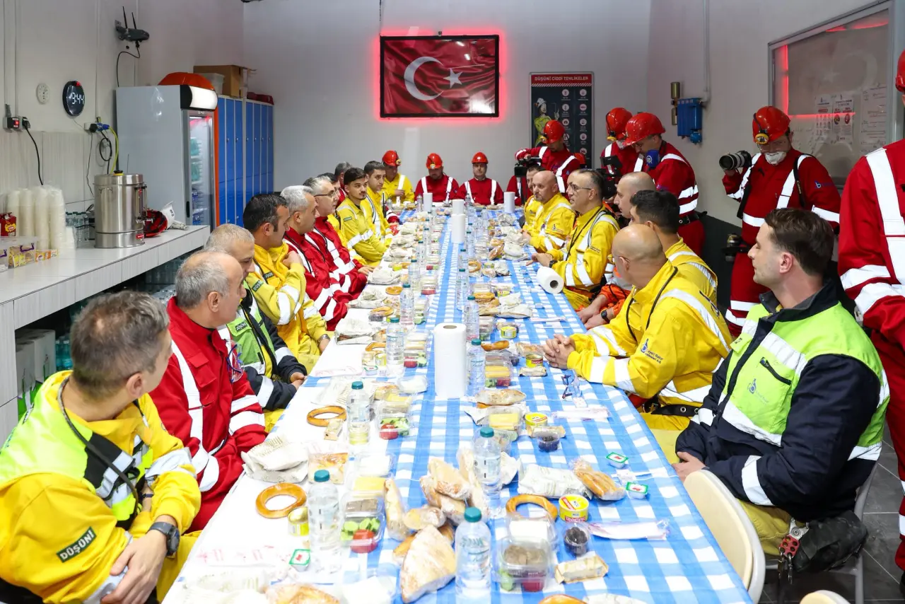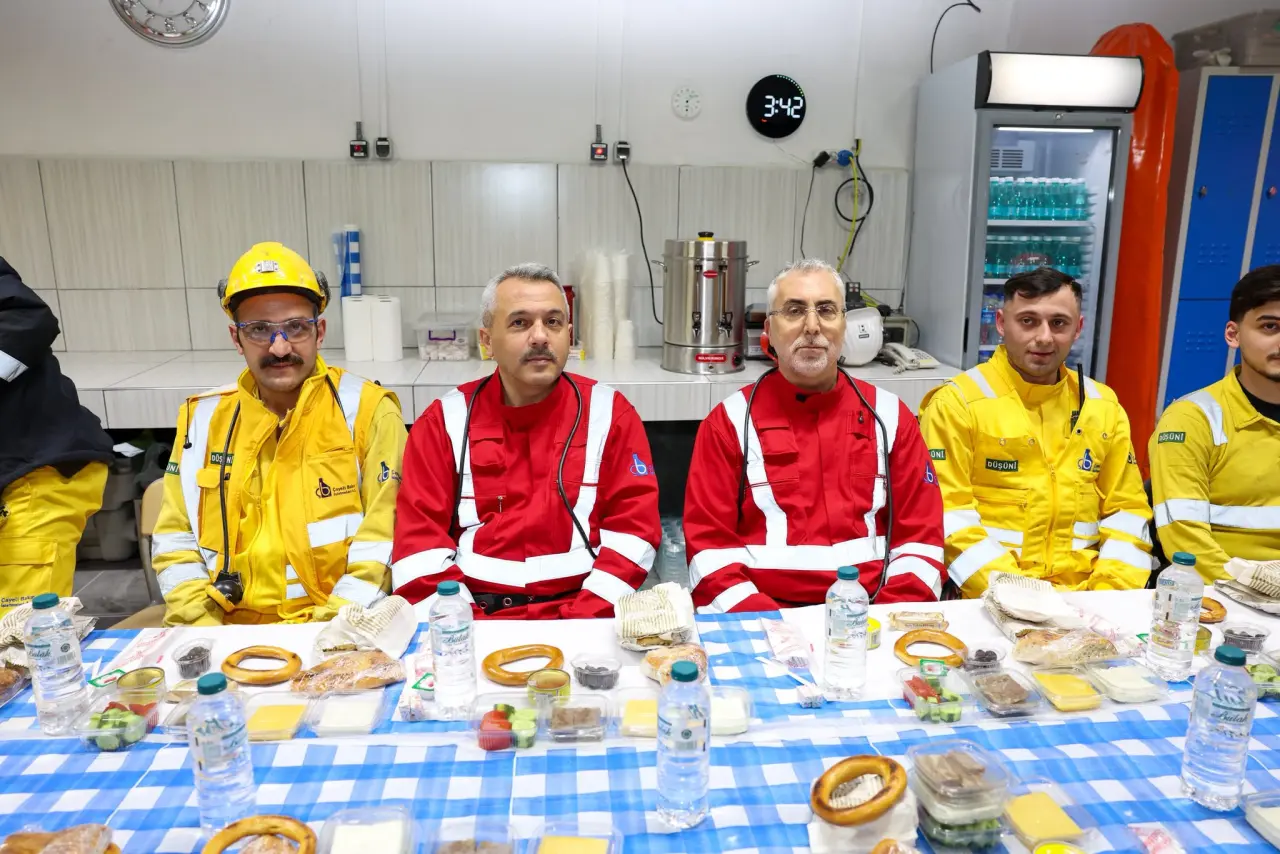 Rize’de Çayeli Bakır İşletmeleri’nde düzenlenen sahur programında Bakan Vedat Işıkhan ve Vali İhsan Selim Baydaş, yerin metrelerce altında çalışan maden işçileriyle bir araya geldi.