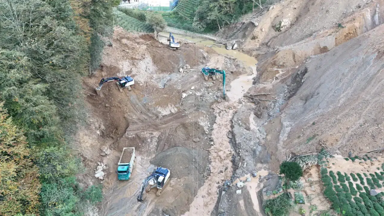 Rize’nin Çayeli ilçesine bağlı Büyükköy Beldesi Derecik Köyü'nde 21 Ekim 2024 tarihinde meydana gelen heyelanın yaralarını sarmak için sürdürülen çalışmalar hız kesmeden devam ediyor. Heyelanın ardından bölgeye yönlendirilen ekipler, makinalı çalışmalarla hasar gören alanlarda iyileştirme ve güvenlik tedbirleri almak üzere görev başında.