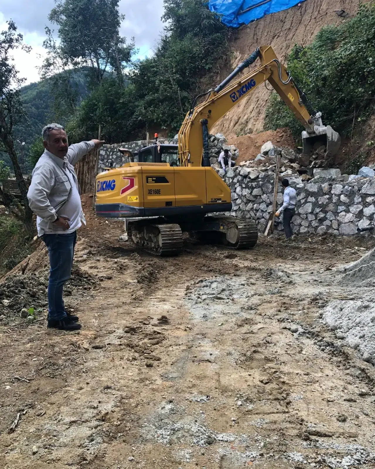 Son yağmurlarda yaşanan heyelanda kopan yamacın 2 katlı eve tehlike arz ettiğini belirten Başkan Karagöz “Neyseki bu olayda can kaybımız yok hamdolsun bunları söylüyorum ki belki ders çıkartırız. İlçemiz Güney mahallesinde Eyüpoğulları mevkiinde evinin altı kopan ve tehlikeye giren vatandaşımızın imdadına Rize valiliği İl AFAD müdürlüğü Ve belediyemiz yetişti evi koruma altına almak için Rize AFAD il müdürlüğünün büyük desteği ile 30 mt uzunluğunda 5 mt yüksekliğinde 2 mt genişliğinde yaklaşık 300 m3 duvar imalatı yapıyoruz.