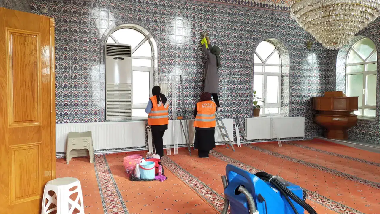 Çayeli Belediyesi Ramazan ayı öncesi başlattığı çalışmalarla camilerde kapsamlı temizlik işlemleri gerçekleştirdi.