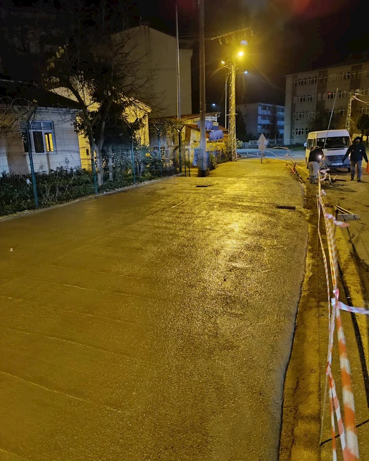 Çayeli Belediyesi yol betonlama çalışmaları kapsamında gündüz başlatmış olduğu yaya kaldırımı betonlama çalışmalarını akşam saatlerine kadar devam ettirdi.Yoğun mesai harcayan ekipler vatandaşların bir an önce yaya kaldırımına kavuşması için çalıştı.