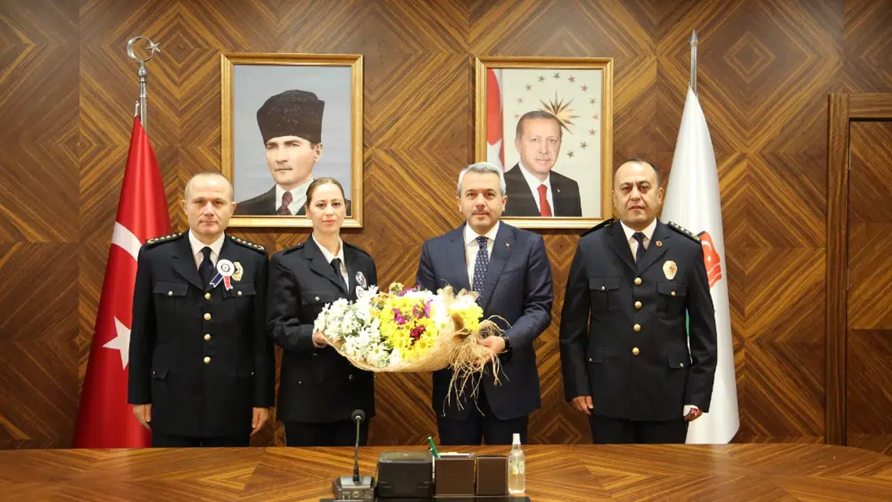 Rize İl Emniyet Müdürü Murat Türesin ve Rize Polis Mesleki Eğitim Merkezi Müdürü Murat Üngör beraberlerindeki heyet ile birlikte Türk Polis Teşkilatının 179. Kuruluş Yıldönümü ve 10 Nisan Polis Haftası etkinlikleri kapsamında Rize Valisi İhsan Selim Baydaş’ı ziyaret etti.