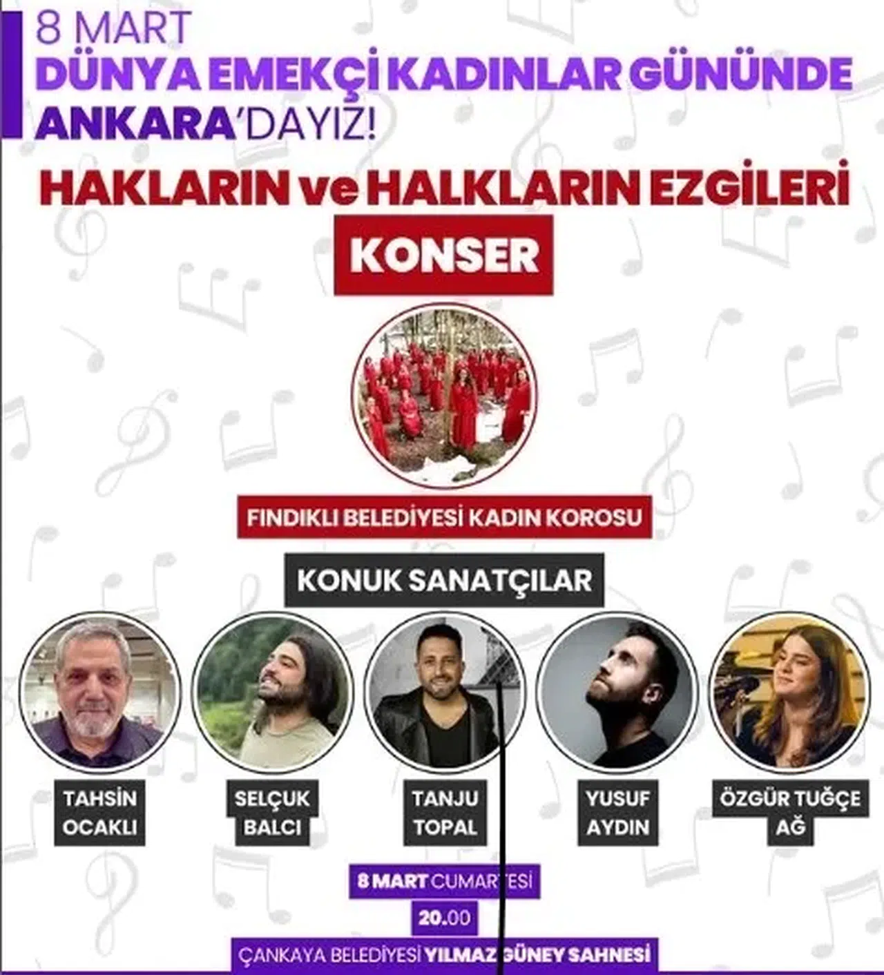 Konserde, Selçuk Balcı, Tanju Topal, Yusuf Aydın, Özgür Tuğçe Ağ ve CHP Rize Milletvekili Tahsin Ocaklı gibi değerli isimler konuk sanatçı olarak yer alacak. Fındıklı Belediyesi tarafından yapılan açıklamada, bu özel konserin Dünya Kadınlar Günü’nde kadın emeğine ve dayanışmasına dikkat çekmek amacıyla düzenlendiği vurgulandı.