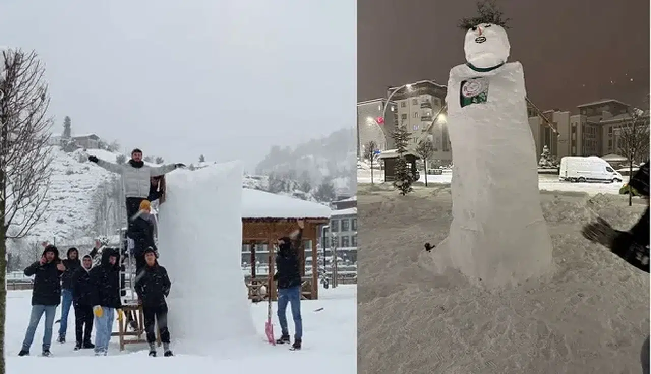 Rize’nin Güneysu ilçesinde, iki gün boyunca aralıksız devam eden kar yağışı, gençleri harekete geçirdi. Kar yağışını fırsat bilen Güneysulu gençler, Güneysu Millet Bahçesi’nde bir araya gelerek dev bir kardan adam inşa etti. Tam 4 metre 30 santimetre boyundaki bu kardan adam, Karadeniz Bölgesi’nin şu ana kadar bilinen en büyük kardan adamı olma unvanını kazandı.