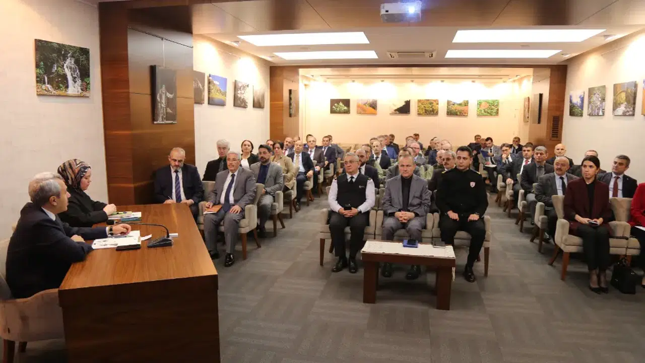 5442 sayılı İl İdaresi Kanunu’nun 24. maddesi gereğince idarede birliğinin sağlanması, işlerin gözden geçirilerek düzenlenmesi, teşkilatın uyumlu çalışması için gerekli tedbirlerin alınmasını görüşmek ve kararlaştırmak amacıyla İl İdare Şube Başkanları toplantısına Vali Yardımcısı Hatice Cemre İncesu, İl İdare Şube Başkanları ile kamu kurum ve kuruluş müdürleri katıldı.