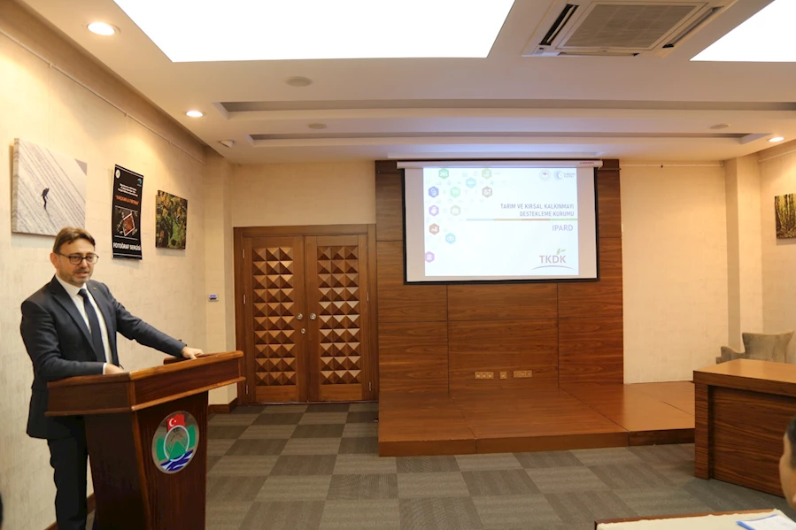 Toplantıda, Tarım ve Kırsal Kalkınmayı Destekleme Kurumu (TKDK) Trabzon-Rize İl Koordinatörü Şansal Aydoğdu tarafından TKDK'nın 2024 yılında ilana çıkılan hibe başlıklarının yer aldığı ilgili sunum yapıldı.