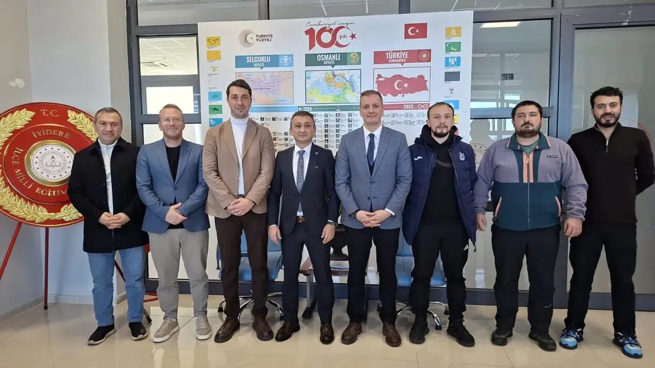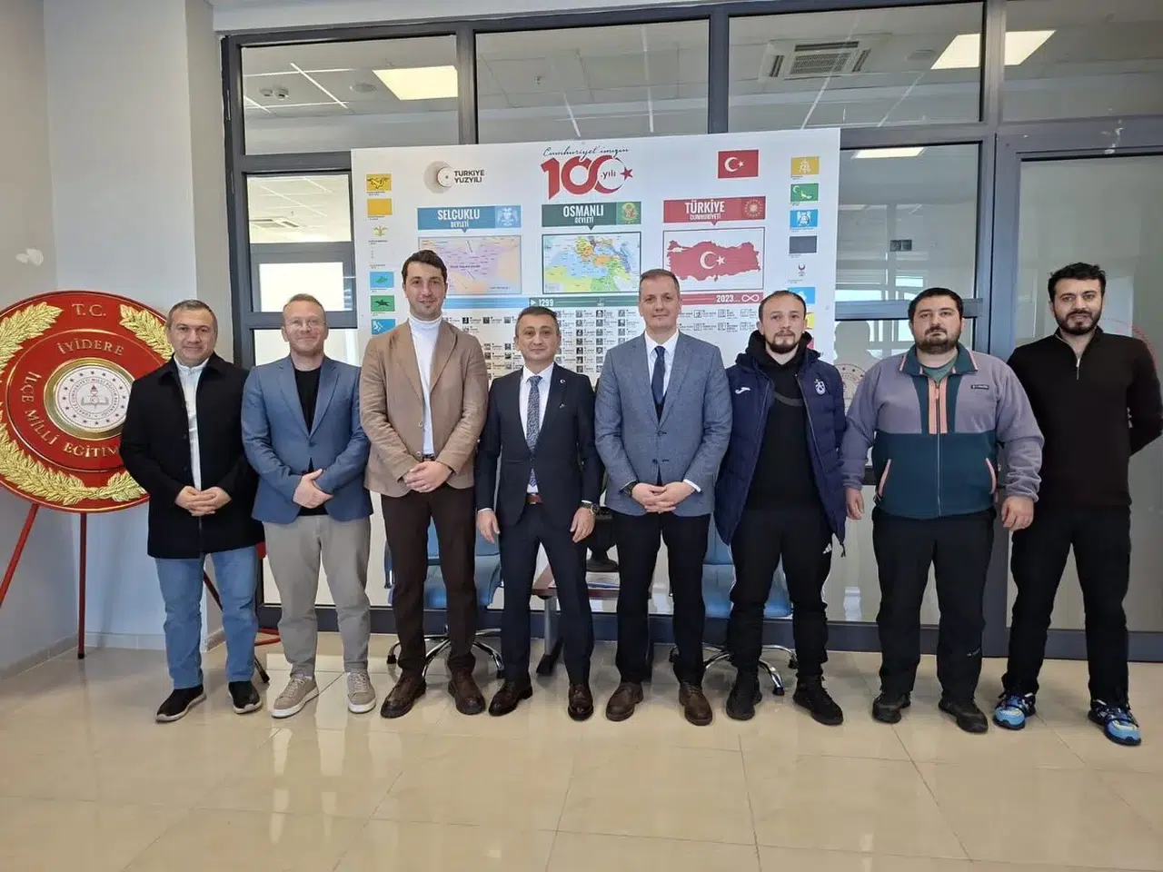 İyidere Gençlik ve Spor İlçe Müdürü Sinan Kaba, ilçe müdürlüğü bünyesinde görev yapan antrenörlerle birlikte İyidere İlçe Millî Eğitim Müdürü Mehmet Haldızoğlu’nu makamında ziyaret etti.