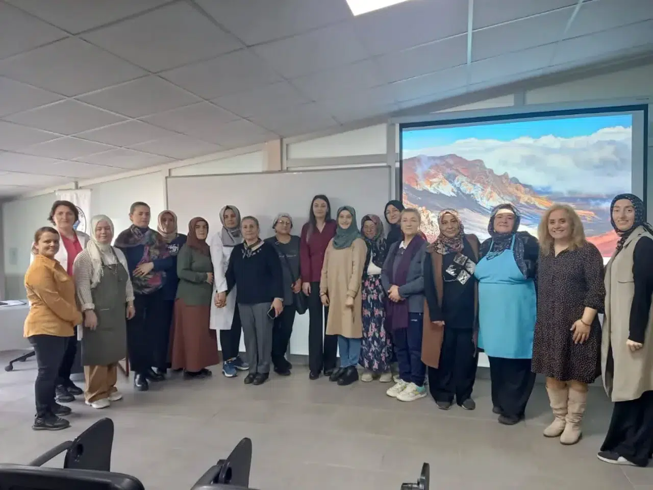 Uzmanlar tarafından verilen sunumda, sağlıklı beslenmenin temel ilkeleri, günlük beslenme düzeni, hazır gıdaların zararları ve doğal beslenmenin önemi gibi başlıklar ele alındı. Özellikle evde yemek planlaması, çocukların beslenmesi ve etiket okuma alışkanlığı gibi pratik bilgiler paylaşıldı.