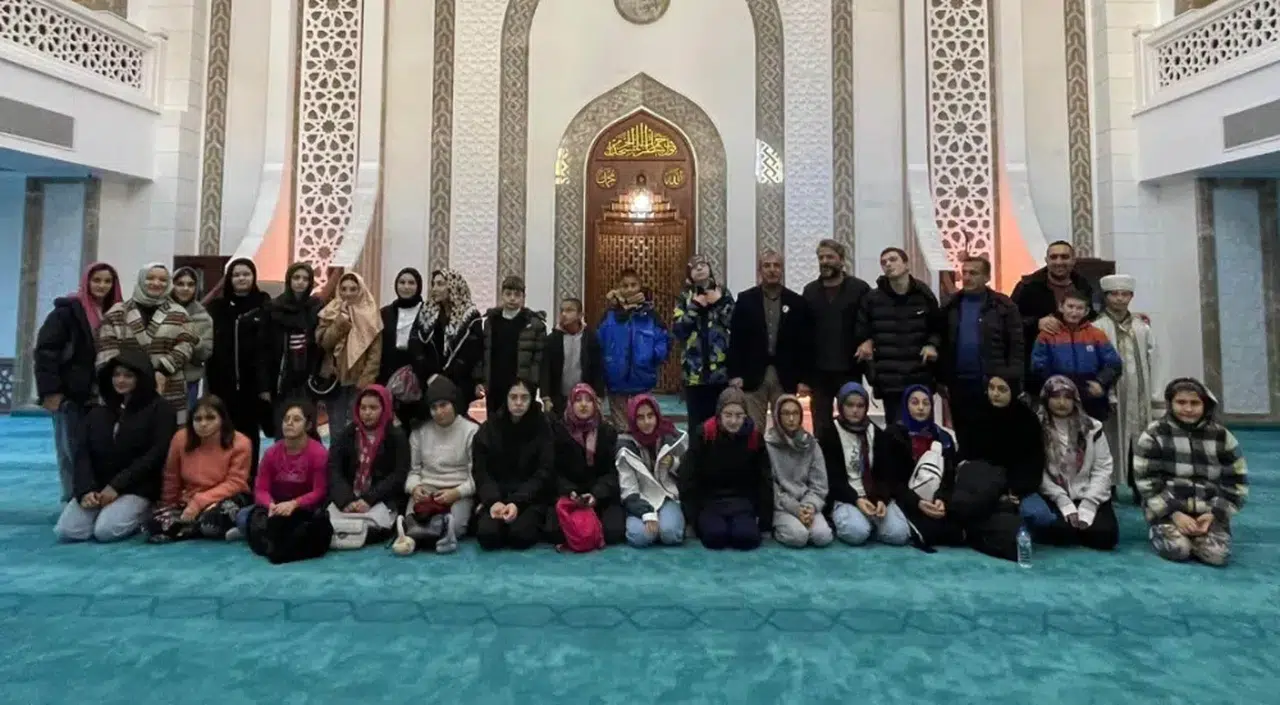 Öğrenciler, Rize Ziraat bahçesini gezdikten sonra Çaykur Ziraat Camii’ne geçti. Burada sarık takıp cüppe giyen öğrenciler, sembolik olarak imam oldular. Mihrab, minber ve kürsüye geçerek çeşitli dua ve sureleri okudular.