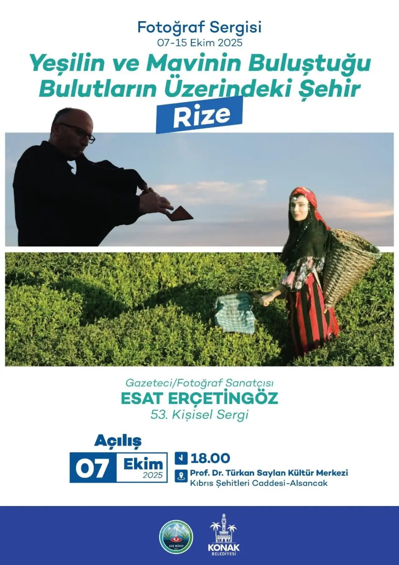 İzmir’de Rize rüzgârı esecek! Gazeteci ve fotoğraf sanatçısı Esat Erçetingöz, Mayıs ayında İzmirli basın mensuplarıyla katıldığı Rize gezisinden derlediği fotoğrafları “Maviyle Yeşilin Buluştuğu Bulutların Üzerindeki Şehir RİZE” isimli sergide izleyicilerle buluşturuyor. Sergi, 7 Ekim 2025 Salı günü saat 18.00’de Türkan Saylan Kültür Merkezi’nde kapılarını açacak.