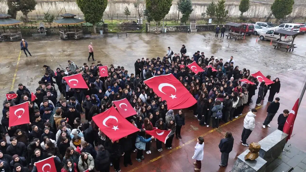 Tören boyunca ay-yıldızlı bayrağın göklerde dalgalanması eşliğinde okunan İstiklal Marşı, katılımcılara duygu dolu anlar yaşattı. Programda, vatan sevgisi, bağımsızlık ruhu ve ortak değerler vurgulanırken, genç nesillerde milli bilincin güçlendirilmesinin önemine dikkat çekildi.