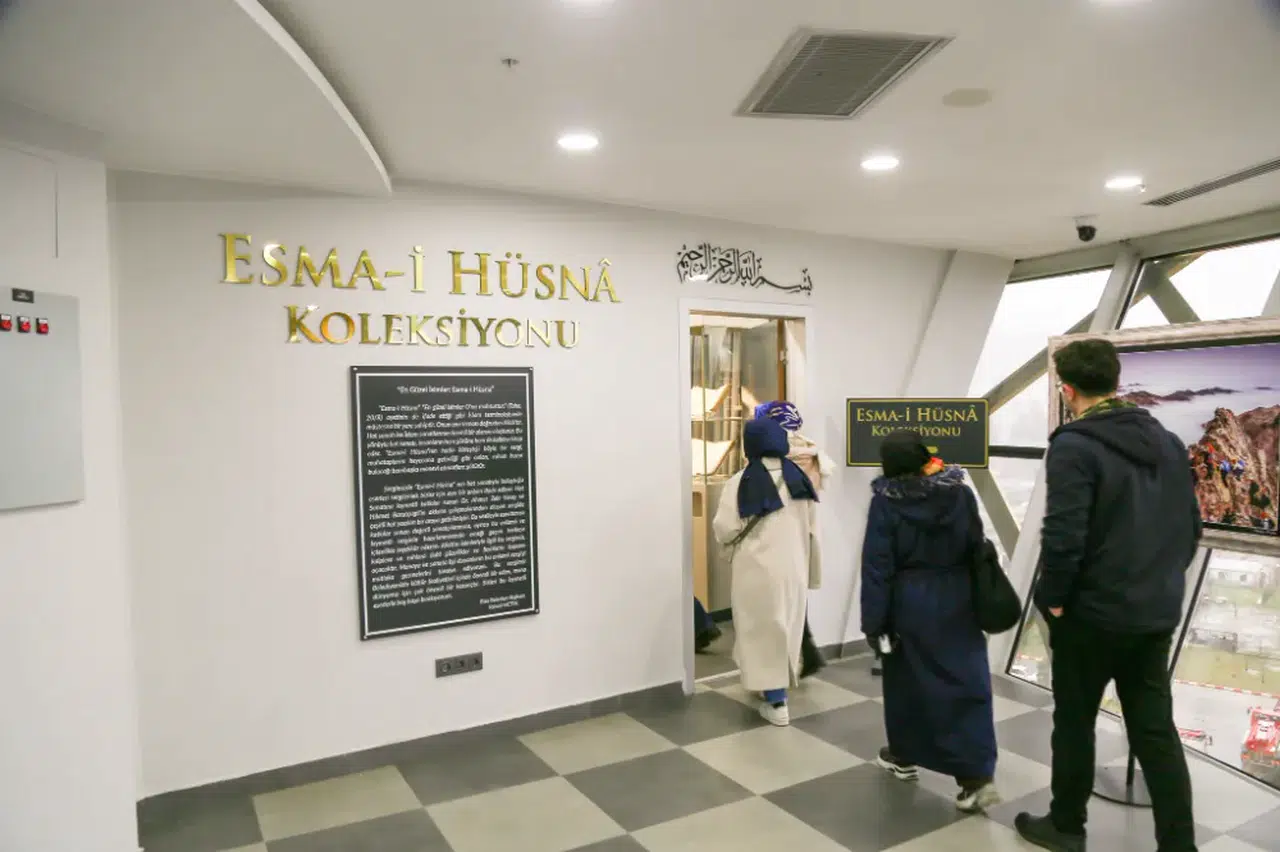Esma-i Hüsna Koleksiyonu’nda yer alan eserler, her bir ismin anlamını vurgularken, geleneksel Türk sanatlarıyla birleştirilmiş. Hat sanatının incelikleriyle yazılan Esma-i Hüsna, akkase tekniğiyle derinlemesine işlenmiş, ebru sanatının özgün desenleriyle desteklenmiş. Ziyaretçiler, bu eserleri inceleyerek hem sanatı hem de manevi bir yolculuğa çıkıyor.