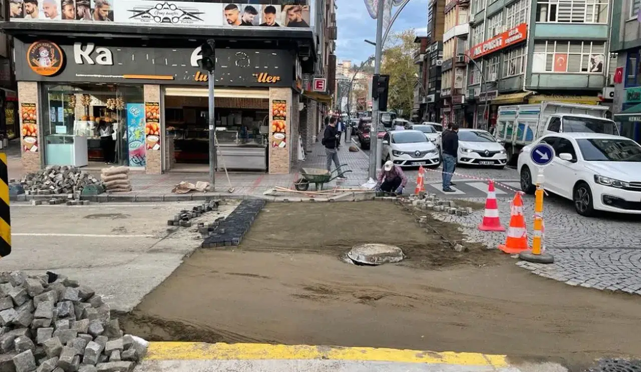 Rize Belediyesi kaldırım ve yol çalışmalarına durmaksızın devam ediyor.