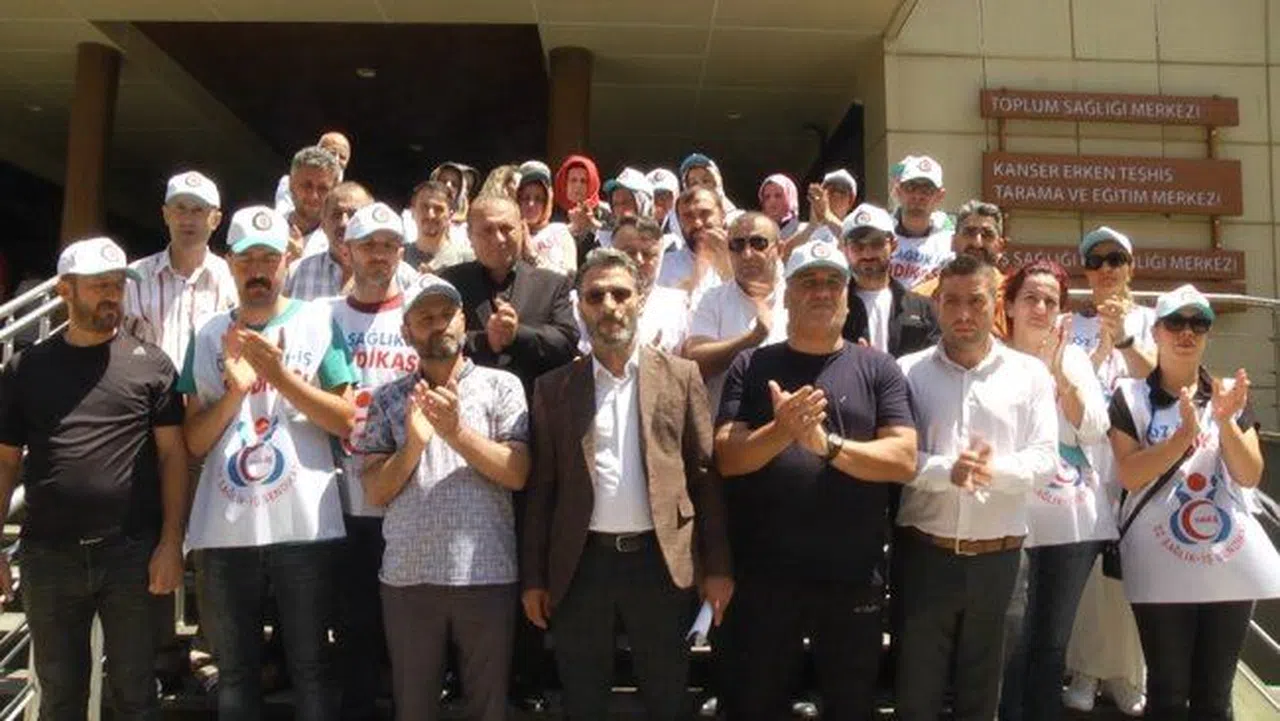 Rize'de sağlık sektöründe çalışan işçiler, geriye dönük alacaklarının ödenmesi için eylem yapıyor.