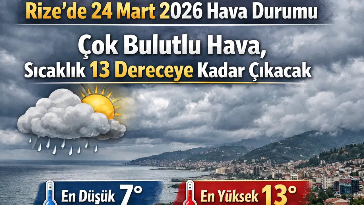 Rize’de 24 Mart 2026 tarihine ait hava durumu tahminleri açıklandı. Meteorolojik verilere göre şehir genelinde gün boyunca çok bulutlu bir havanın etkili olması bekleniyor.