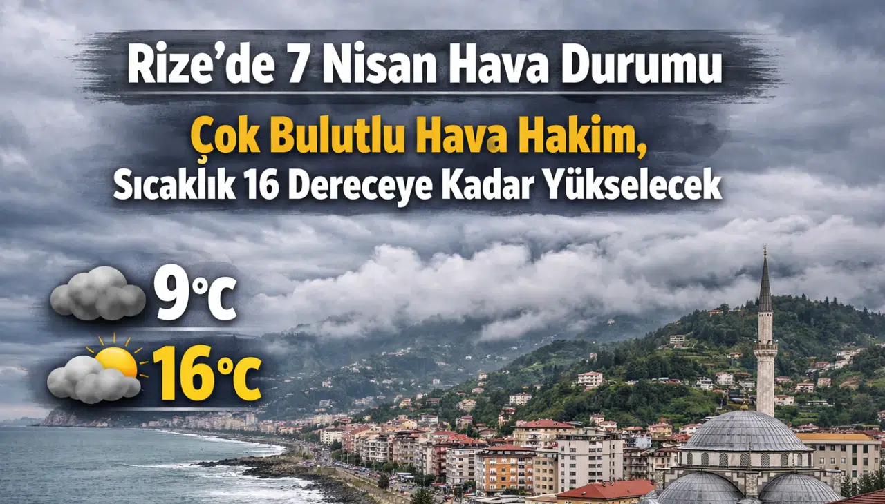 Meteorolojik verilere göre, Rize’de 7 Nisan tarihinde çok bulutlu bir hava etkili olacak. Gün boyunca gökyüzünün büyük ölçüde bulutlarla kaplı olması beklenirken, zaman zaman güneşin yüzünü göstermesi de olası görünüyor.