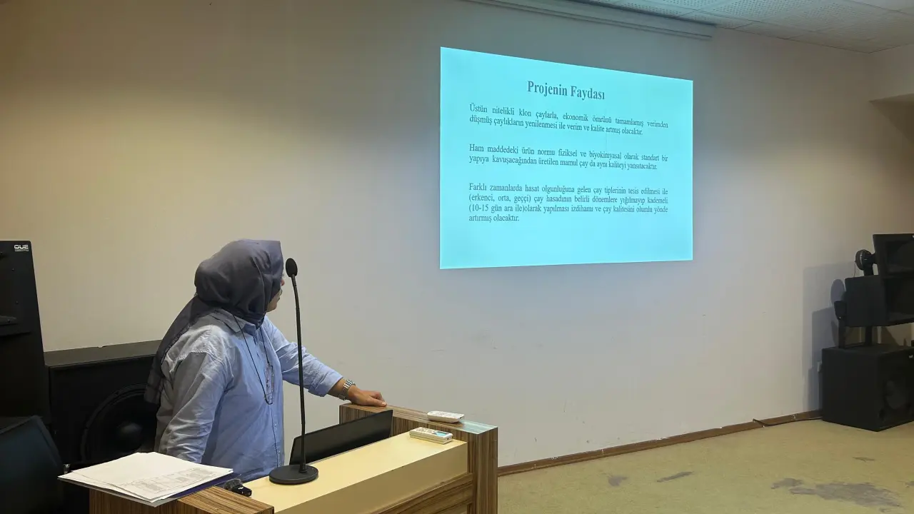 Ardından Çay ve Çay Ürünleri Uygulama ve Araştırma Merkezi Müdürü Keziban Yazıcı ile ÇAYKUR Çay Araştırma Enstitüsü Bitki ve Toprak Bölüm Müdürü Hülya Birben Çelik, Çay Bahçelerinin Yenilenmesi Projesi hakkında sunum yaptı.