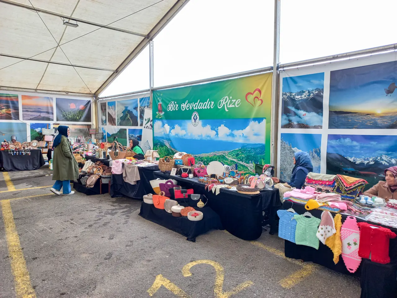 Rize Belediyesi tarafından Çay Çarşısı yanı sahil otoparkı alanında kurulan Hanımeli Çarşısı, el emeği göz nuru ürünlerle vatandaşların ilgisini çekmeye devam ediyor.