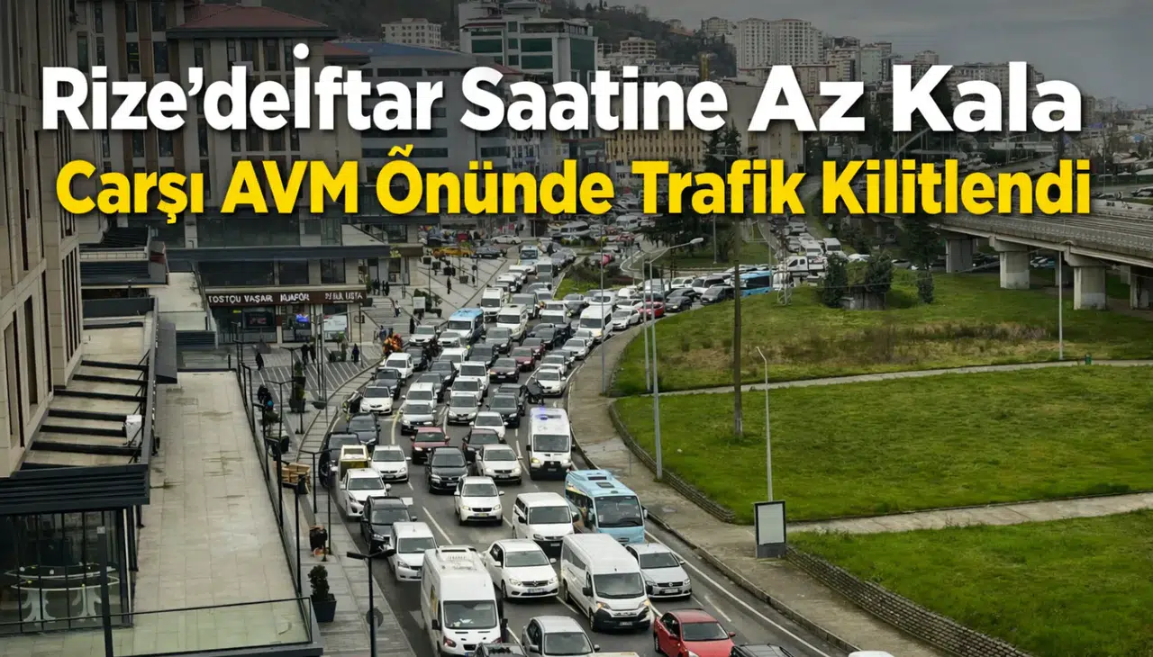 Rize’de Ramazan ayında iftar saatine az kala şehir merkezinde trafik yoğunluğu yaşandı. Özellikle Çarşı AVM önünde ve çevresindeki ana yollarda oluşan araç yoğunluğu nedeniyle uzun araç kuyrukları oluştu.