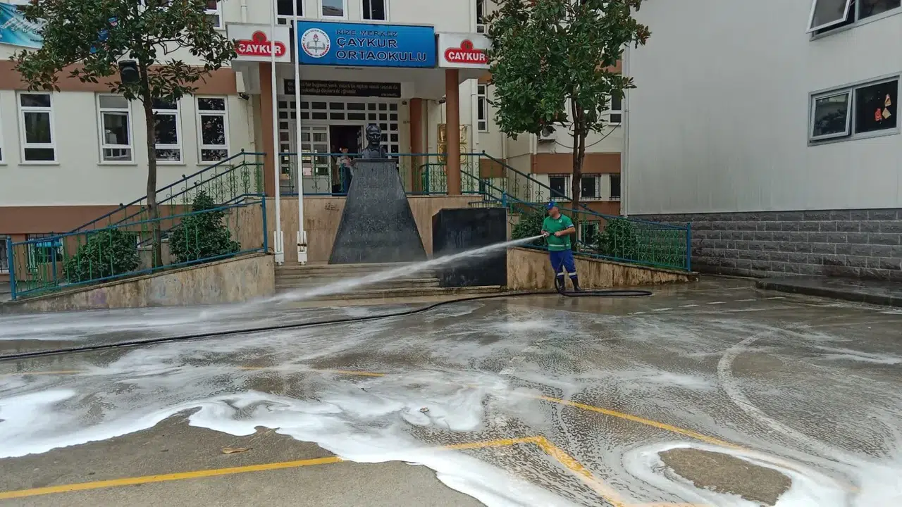 2025-2026 eğitim-öğretim yılı öncesinde Rize Belediyesi, öğrencilerin sağlıklı ve hijyenik ortamlarda eğitim görebilmesi için okul bahçelerinde kapsamlı temizlik çalışmalarını sürdürüyor. Rize Belediyesi Temizlik İşleri Müdürlüğü ekipleri, ilçedeki okullarda yıkama ve dezenfeksiyon çalışmalarını aralıksız devam ettiriyor.