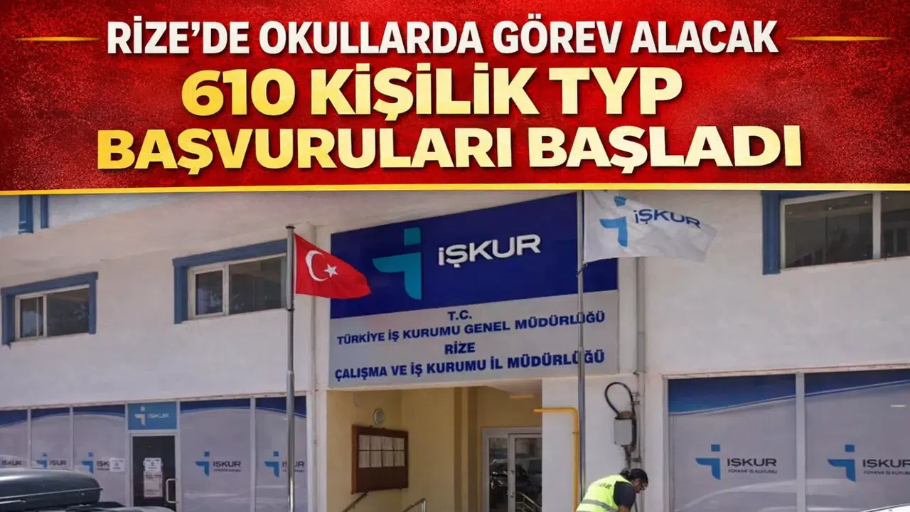 Rize Çalışma ve İş Kurumu (İŞKUR) İl Müdürlüğü ile Rize İl Milli Eğitim Müdürlüğü arasında imzalanan protokol kapsamında, il ve ilçelerdeki okullarda görevlendirilmek üzere 610 kişilik Toplum Yararına Program (TYP) başvuruları başladı. Başvurular 3 Mart 2026 tarihine kadar kabul edilecek.
