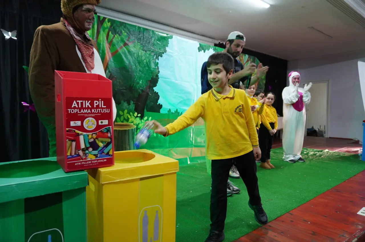Eğitici ve eğlenceli içeriğiyle dikkat çeken tiyatro gösterisinde atıkların doğru ayrıştırılması, geri dönüşümün doğaya katkıları ve sürdürülebilir yaşam alışkanlıkları interaktif anlatımla aktarıldı. Öğrenciler sahneye aktif katılım sağlayarak hem eğlendi hem de çevreyi korumanın önemini öğrendi.