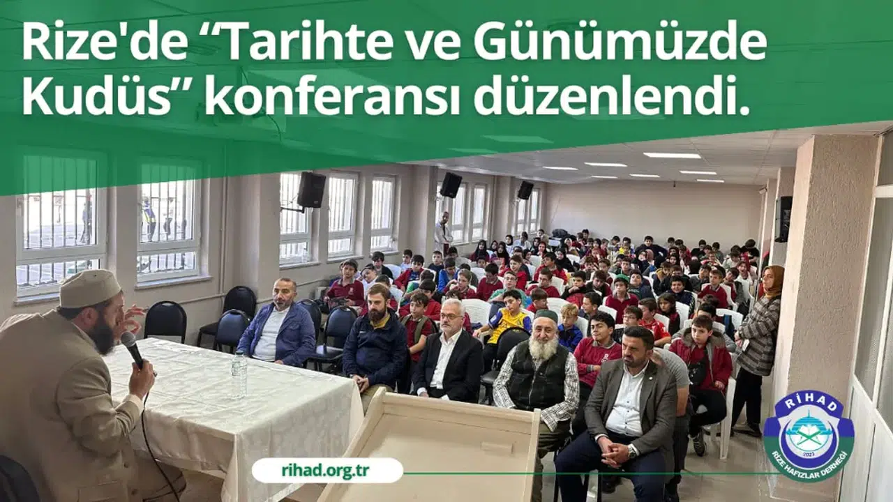 Rize Hafızlar Derneği (RİHAD) tarafından düzenlenen ve Tarihçi – İmam Hatip Mahmut Selmani Sarı’nın konuşmacı olarak katıldığı “Tarihte ve Günümüzde Kudüs” başlıklı konferans, 13 Ekim 2023 Cuma günü Rize İmam Hatip Ortaokulu Konferans Salonunda gerçekleştirildi.