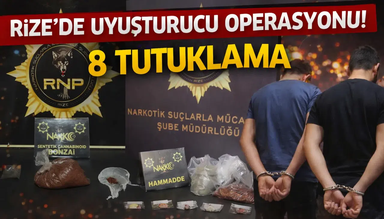 Rize'de emniyet ekiplerince düzenlenen uyuşturucu operasyonunda gözaltına alınan 10 şüpheliden 8'i tutuklandı.