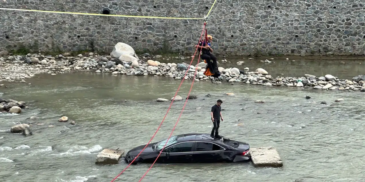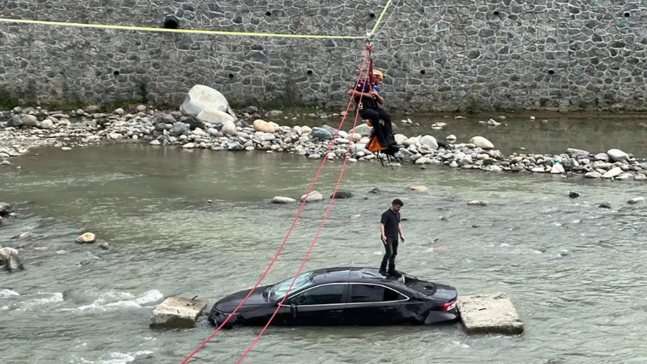 Kısa sürede olaya müdahale eden ekiplerin otomobil üzerindeki kişiyi kurtardığı, sel sularına kapılan kişilerin ise cesedini kıyıya çıkardığı tatbikat, gerçeği aratmadı.