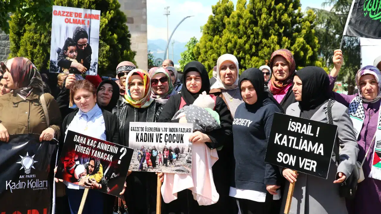 AK Parti'nin Rize, Trabzon, Ordu, Giresun, Artvin ve Bayburt il kadın kolları üyeleri, Anneler Günü öncesi İsrail'in Gazze'ye yönelik saldırılarında hayatını kaybeden anneler ve çocukları için basın açıklaması yaptı.
