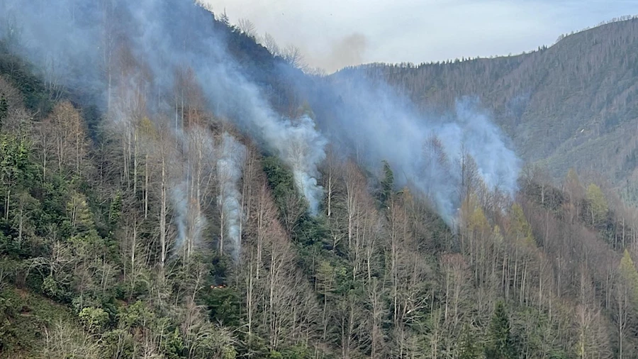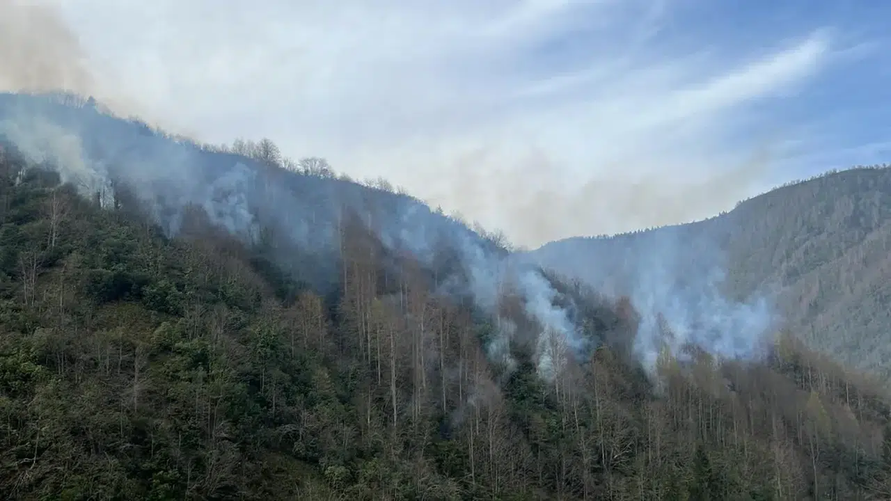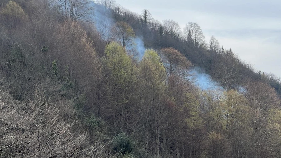 Rize'nin Güneysu ilçesinde çıkan örtü yangınını söndürme çalışmaları devam ediyor.