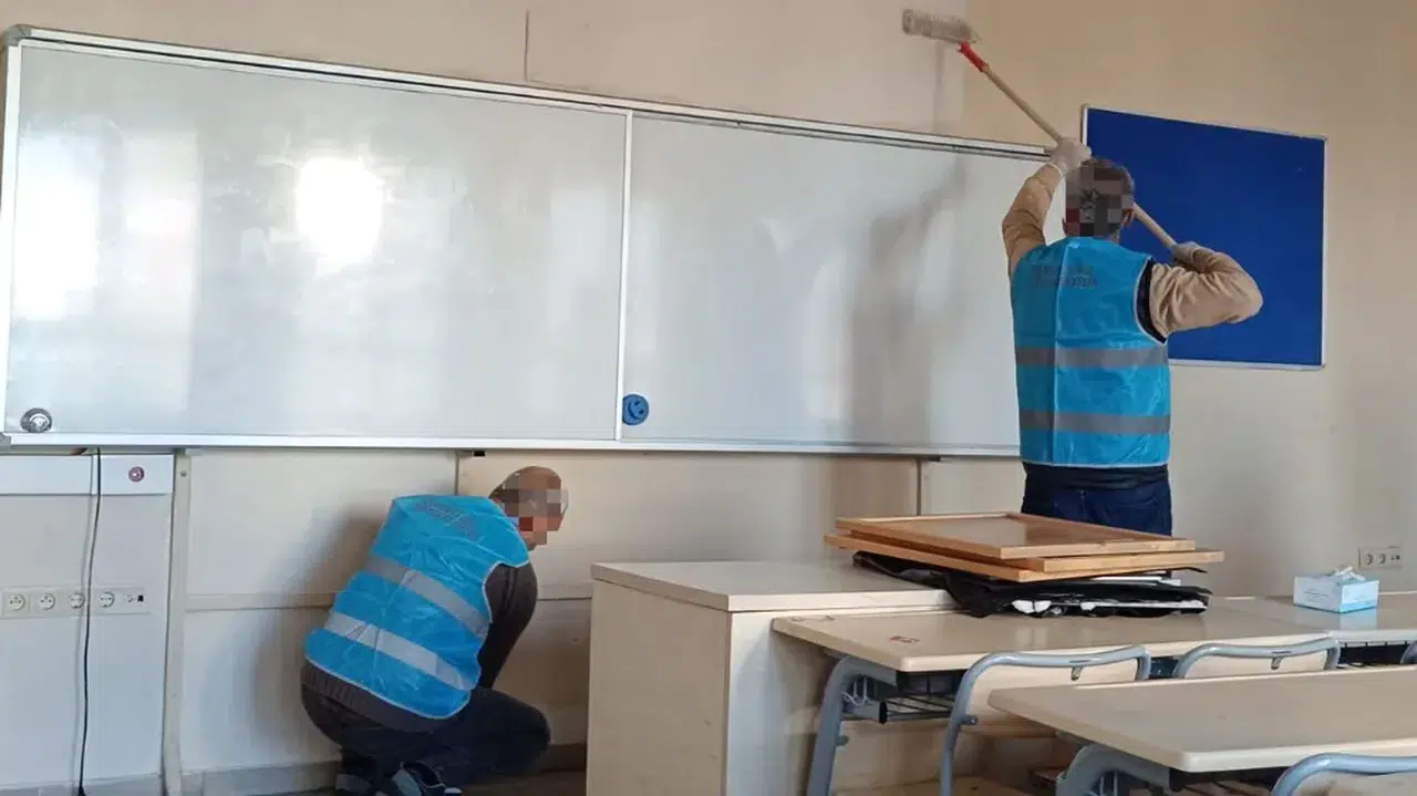 Rize’de, 20-31 Ocak tarihleri arasında gerçekleşen ara tatilde okullarda tadilat çalışmaları hızla başladı. Bu süreçte, Rize Denetimli Serbestlik Müdürlüğü, denetimli serbestlik yükümlülerinden faydalanarak okulların 2. döneme hazır hale getirilmesine yardımcı oluyor. Müdürlüğün oluşturduğu mobil ekipler, İmam Hatip Ortaokulu (Pazar ilçesi) ve Atatürk Ortaokulu (Rize merkez) gibi okullarda boya, badana, tamirat ve tadilat işlerini üstleniyor.