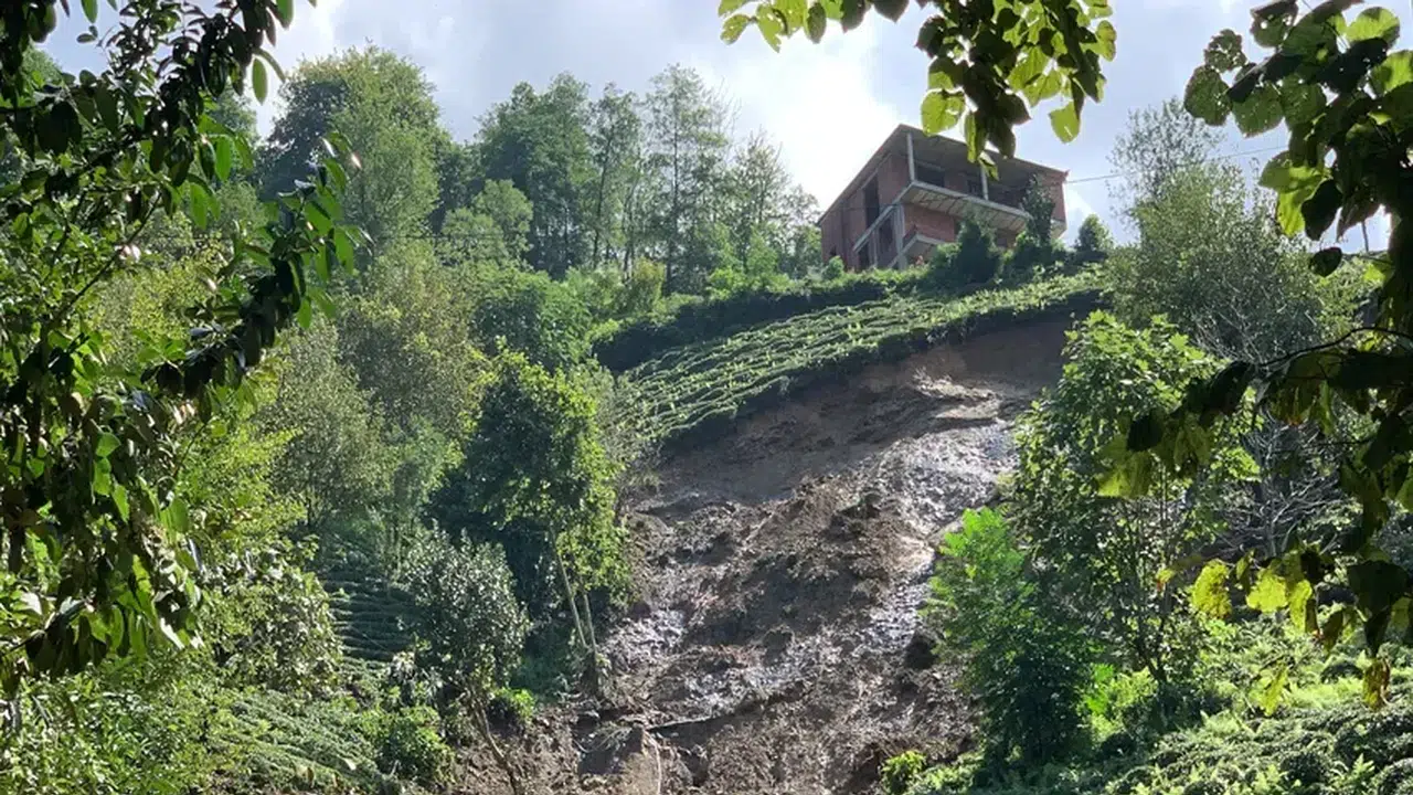 Rize'de de 2 gündür etkili olan sağanak nedeniyle oluşan heyelandan bir çay üreticisinin son anda kurtulduğu ortaya çıktı.