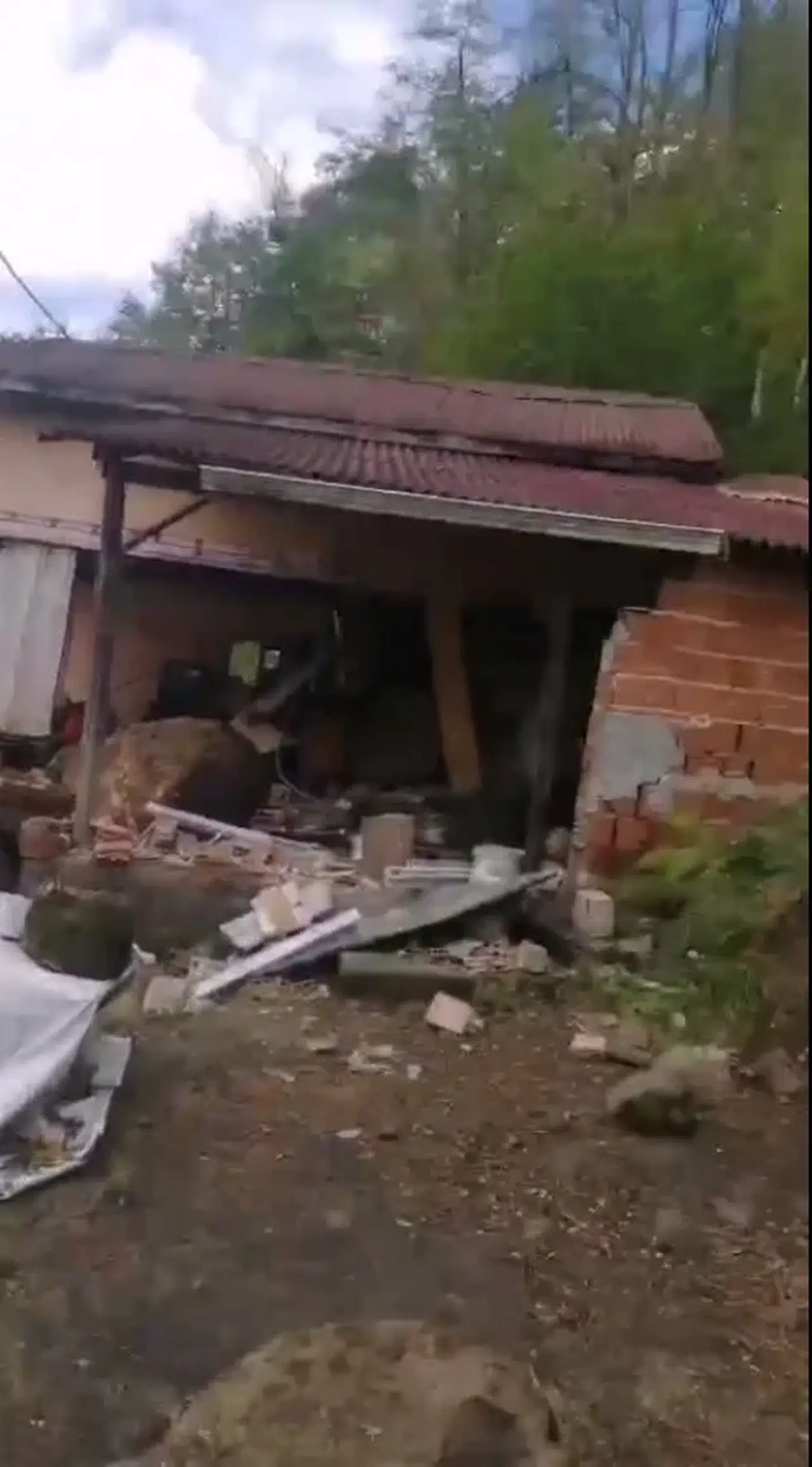 RİZE’de yamaçtan kopan toprak kütlesi ve kaya parçaları tek katı eve çarptı. Heyelanda evi kullanılamaz hale geldi.