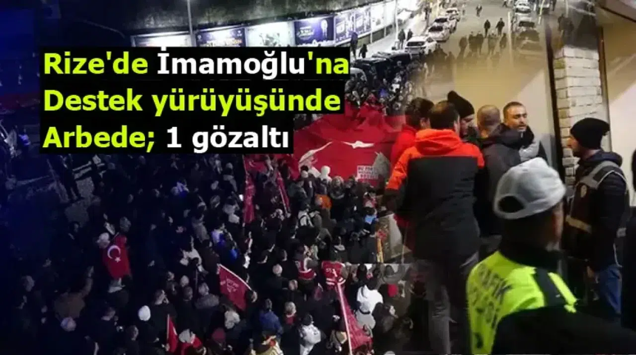 Rize’de, İstanbul Büyükşehir Belediye (İBB) Başkanı Ekrem İmamoğlu’nun tutuklanmasına tepki olarak CHP Rize İl Başkanlığı tarafından bir protesto yürüyüşü düzenlendi. Yürüyüş sırasında göstericiler ile bazı vatandaşlar arasında yaşanan arbede, polisin müdahalesiyle kontrol altına alındı. Olayda 1 kişi gözaltına alındı.