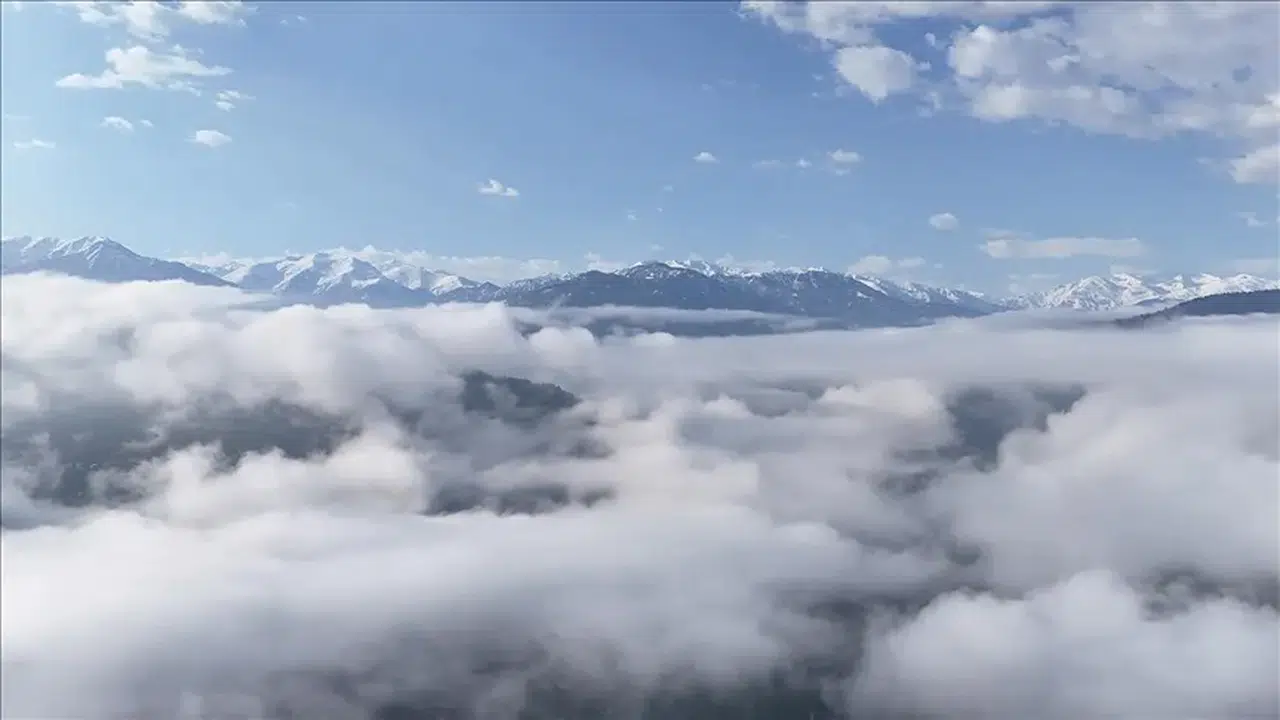 Beyaza bürünen Kaçkar Dağları'nın eteğindeki "sis denizi" görenleri kendisine hayran bırakan olağanüstü görüntüler oluşturdu.