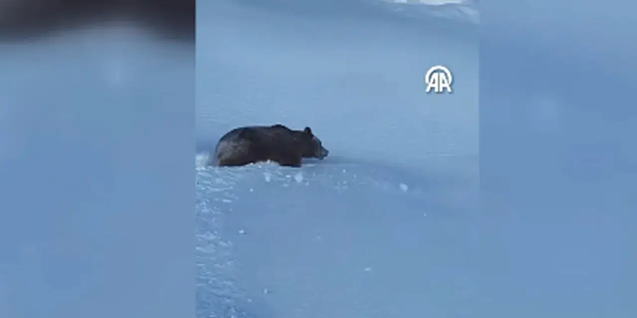 Rize'de karda yuvarlanan ayı cep telefonu ile görüntülendi