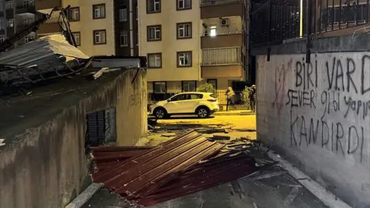 İl merkezinde etkili olan rüzgar nedeniyle Gülbahar Mahallesi'nde bulunan Sarıhan Sitesindeki bir binanın çatısı uçarak Yılmaz Apartmanına çarptı.
