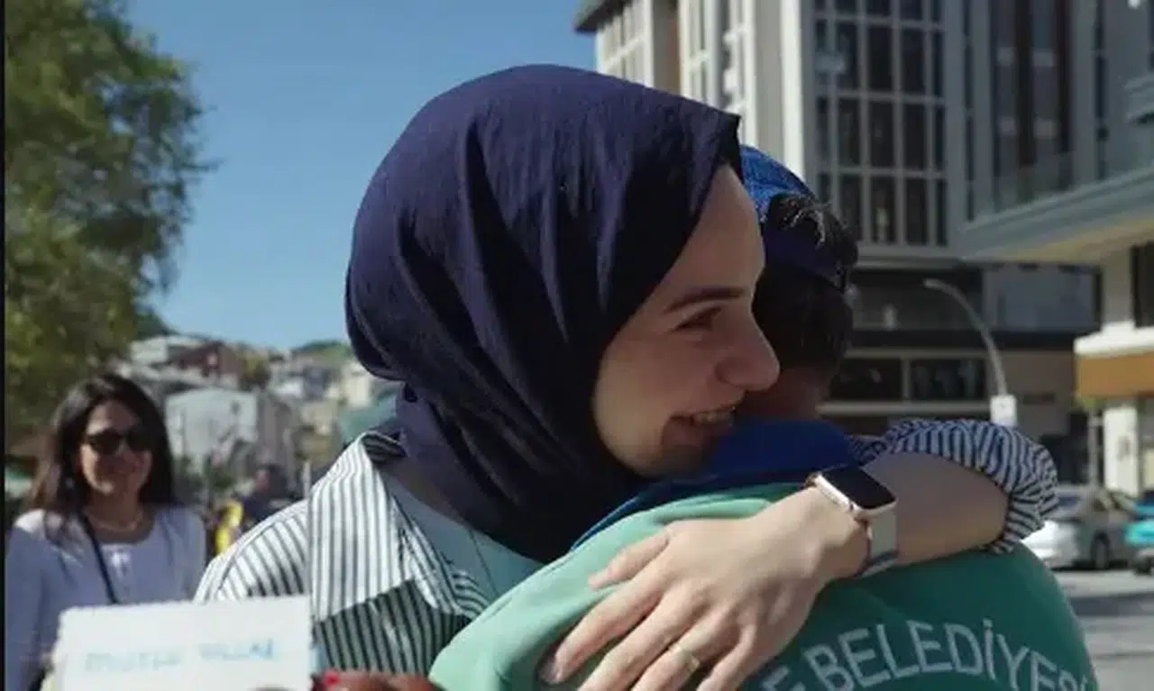 Rize'de Belediyenin temizlik personeli İsmail Yılmaz'ın dün 52'nci yaş günü, ailesi ve iş arkadaşları tarafından kutlandı. Meydanda temizlik yaptığı sırada dev ekranda eşini ve kızını görüp, sesini duyan Yılmaz, kısa süre şaşkınlık yaşadı.