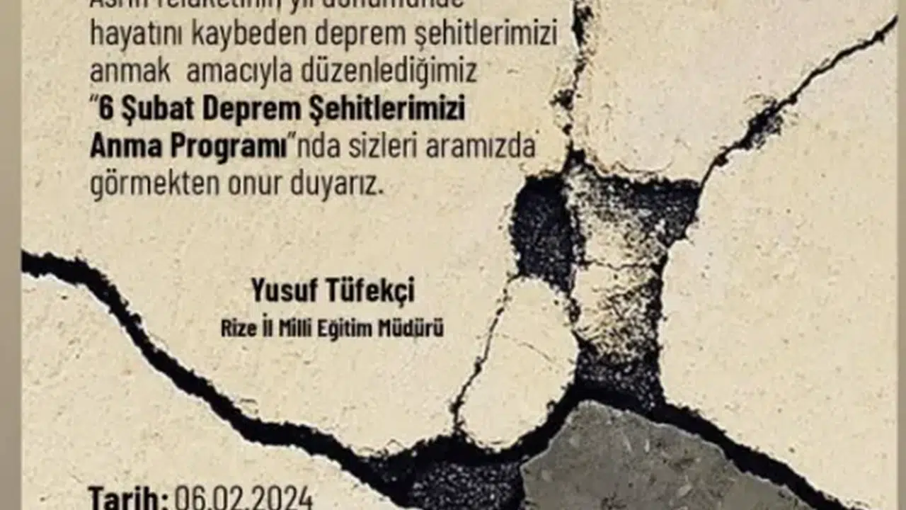 Yapılan duyuruda “ asrın felaketinin yıl dönümünde hayatını kaybeden deprem şehitlerimizi anmak amacıyla düzenlediğimiz 6 Şubat Deprem Şehitlerimizi Anma Programı'nda sizleri aramızda görmekten onur duyarız” ifadeleri kullanıldı.
