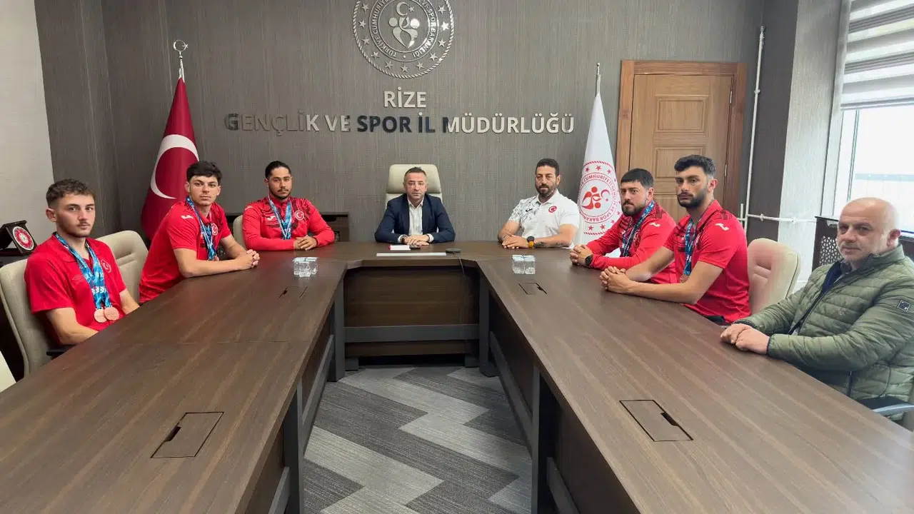 Fransa’nın Pau kentinde düzenlenen U23 Dünya Rafting Şampiyonası’nda önemli bir başarı elde eden ve tamamı Rizeli sporcular ile teknik heyetten oluşan Milli Takım, yurda dönüşlerinin ardından Rize Gençlik ve Spor İl Müdürü Ramazan Öztürk’ü makamında ziyaret etti.