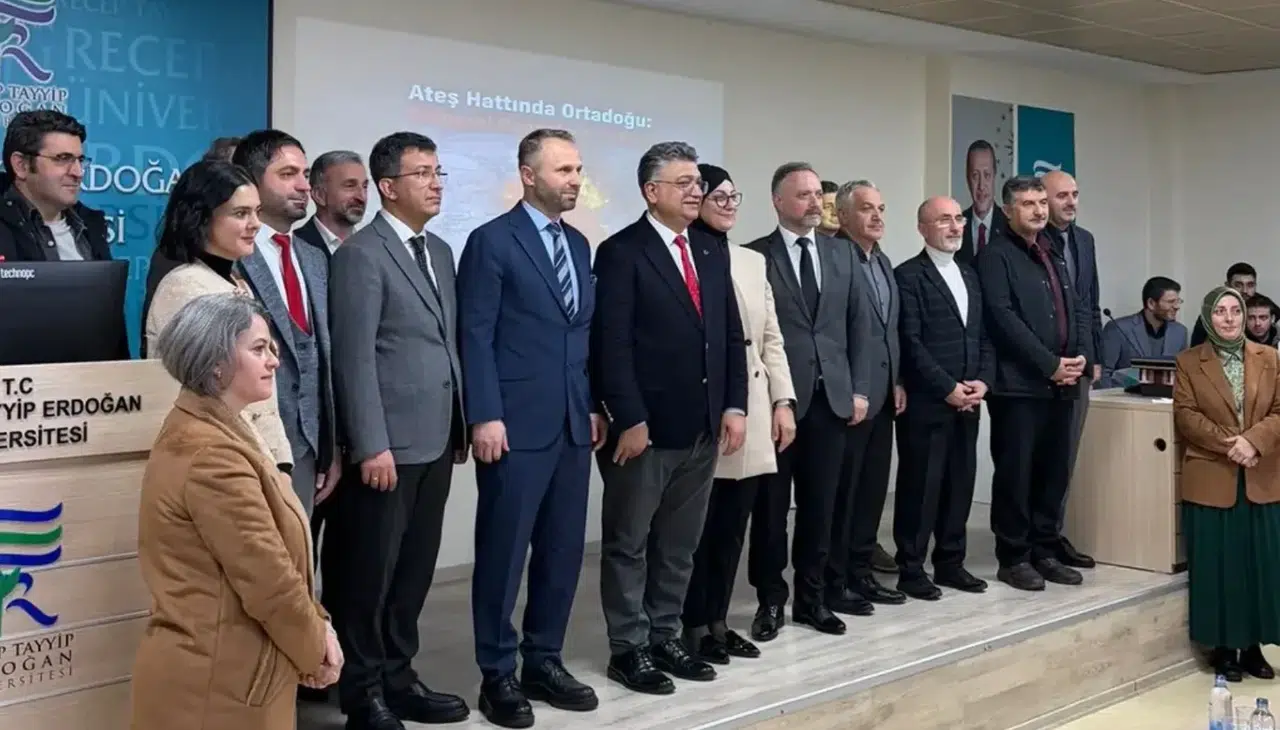 Recep Tayyip Erdoğan Üniversitesi (RTEÜ) bünyesinde faaliyet gösteren Karadeniz Stratejik Araştırma ve Uygulama Merkezi ile KAMER Öğrenci Topluluğu iş birliğinde düzenlenen “Ateş Hattında Ortadoğu: Bölgesel Dengelerin Çöküşü” başlıklı konferans, yoğun katılımla gerçekleştirildi.