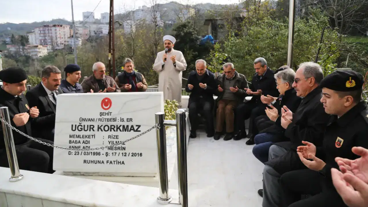 Rize Valisi İhsan Selim Baydaş, Rize Belediye Başkanı Rahmi Metin, Rize İl Emniyet Müdürü Murat Türesin, Rize İl Jandarma Komutanı Alb. Ali Güngör, Rize Müftüsü Naci Çakmakçı ve Şehit Er Uğur Korkmaz’ın ailesi ve yakınlarının katıldığı ziyarette Kur’an-ı Kerim tilaveti okundu ve dualar edildi.Şehit Er Uğur Korkmaz 7 yıl önce memleketi Rize'de yaklaşık 10 bin kişinin katıldığı cenaze namazının ardından toprağa verilmişti.